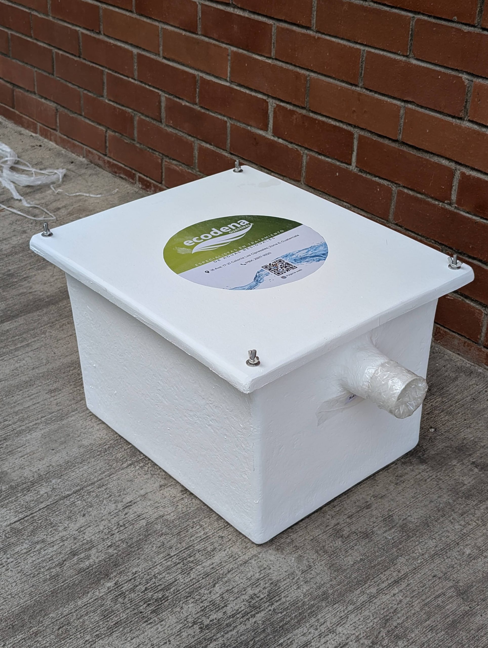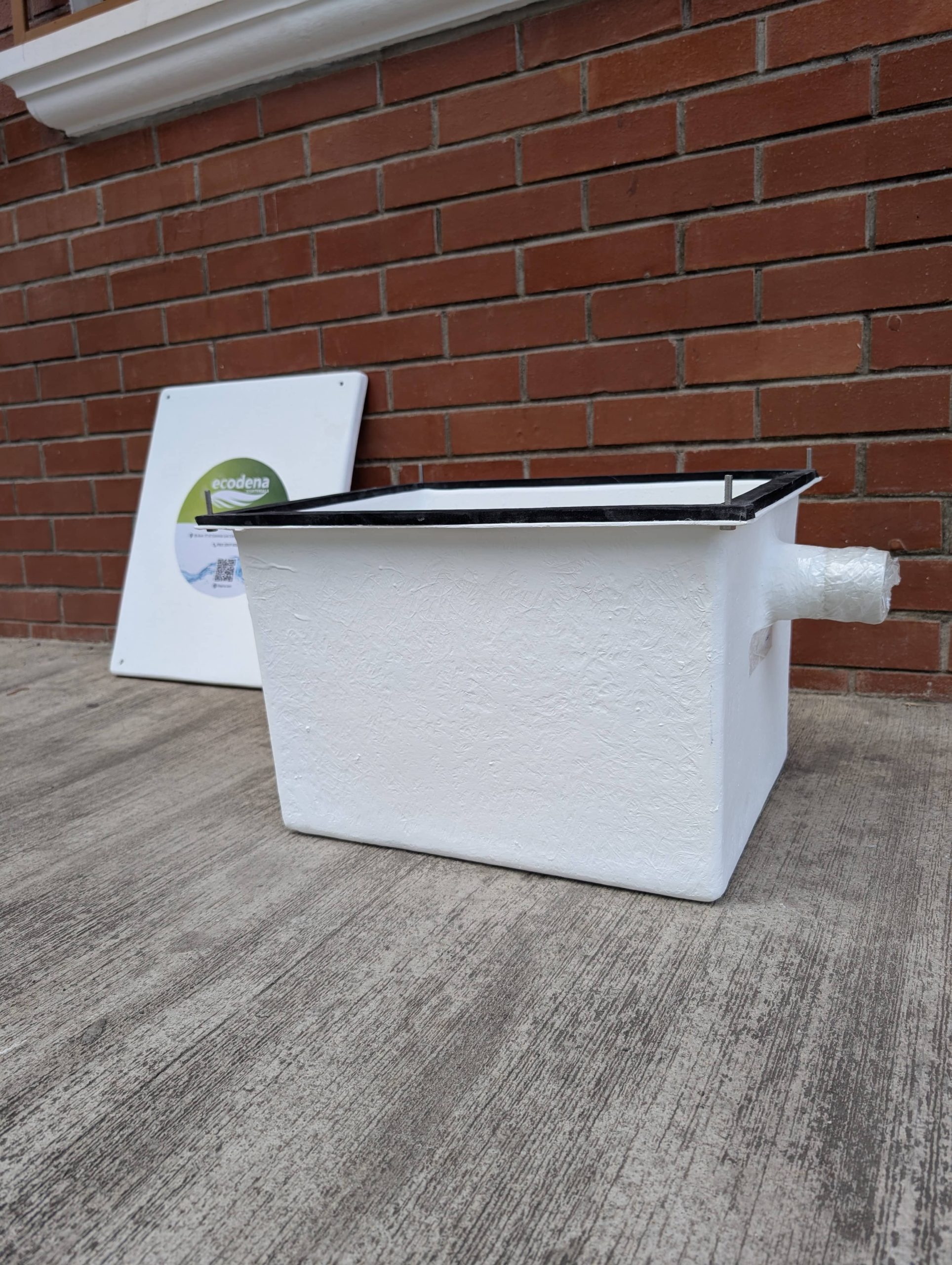 Trampa para grasas para uso doméstico y para pequeñas cocinas profesionales, con forma de paralelepípedo rectangular, fabricada en PRFV y diseñada para su instalación bajo fregadero. Evita vertidos de grasas y aceites al desagüe de la cocina, con posibles atascos en las tuberías de la cocina y daños al Medio Ambiente. Su bajo peso y manejabilidad, permiten una limpieza fácil y rápida.
