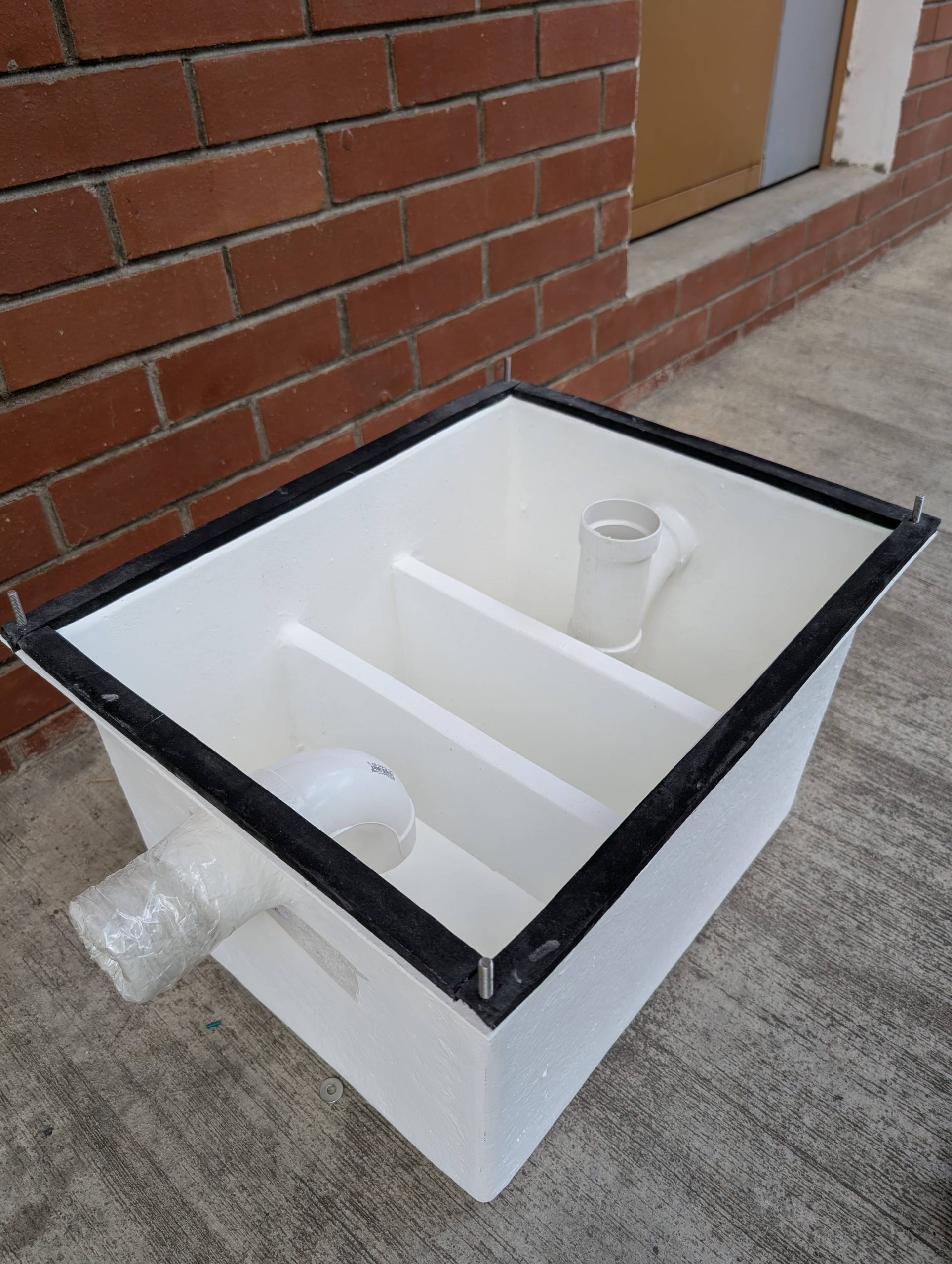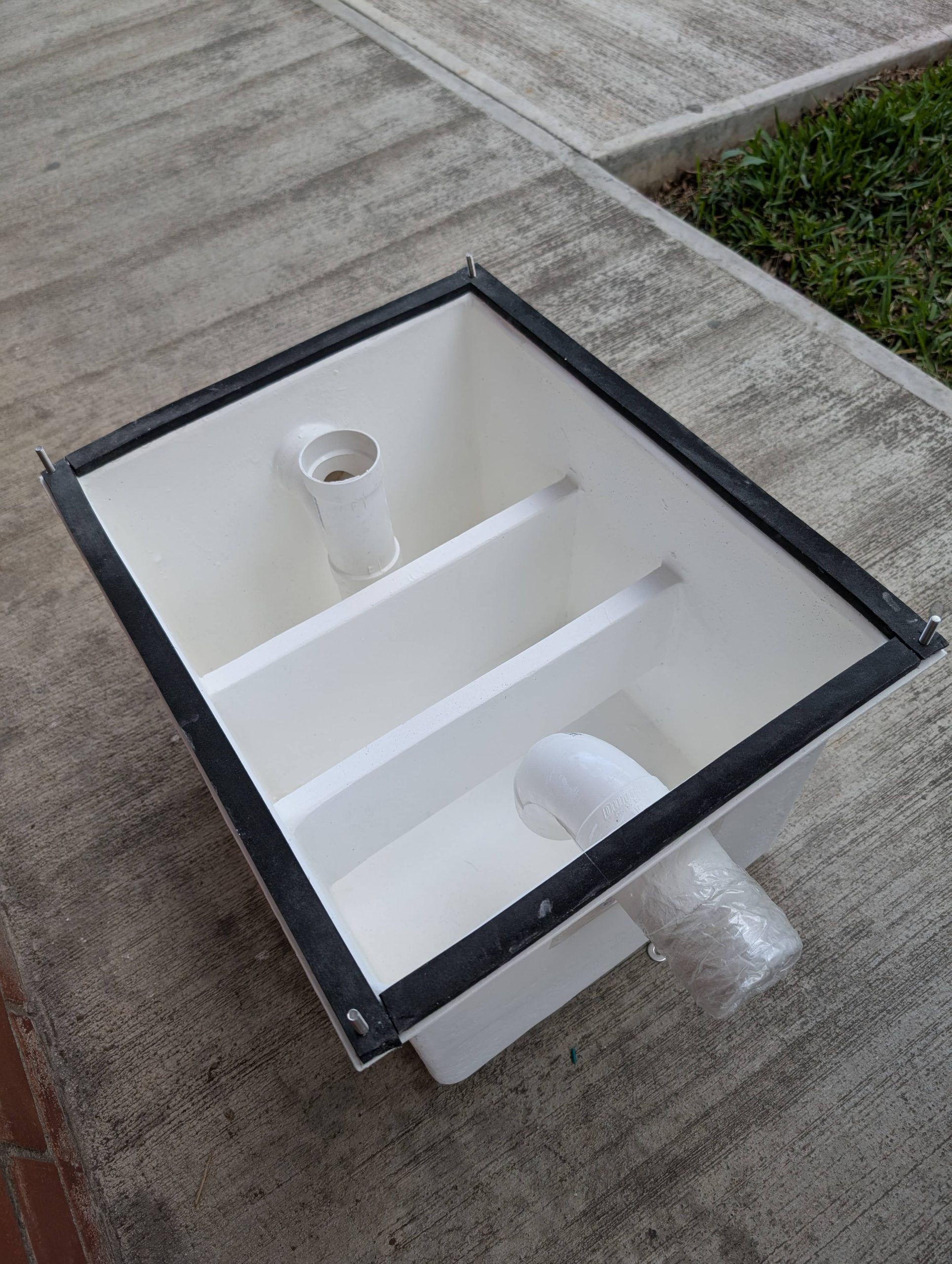 Su interior es completamente liso, con barrera de protección química, para permitir una fácil limpieza y larga vida útil. El acceso al interior de nuestro separador de grasas se realiza retirando la tapa superior, facilitando la limpieza y gracias a sus sistema de sellado mediante junta de neopreno antiácido y tornillería de acero inoxidable AISI 304, se evita la salida de agua y malos olores.